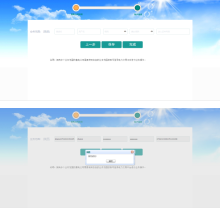 E、需要依據(jù)業(yè)務(wù)范圍來創(chuàng)建登錄平臺的賬號及密碼,點(diǎn)擊保存,點(diǎn)擊完成如下圖: