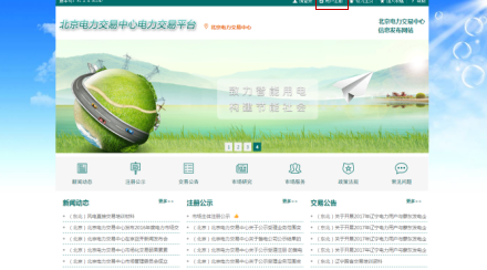 A、 進(jìn)入北京電力交易平臺后,點(diǎn)擊用戶注冊,如下圖