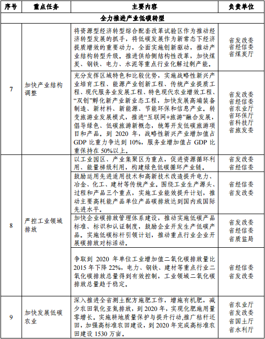 “十三五”控制溫室氣體排放實(shí)施方案任務(wù)分工表