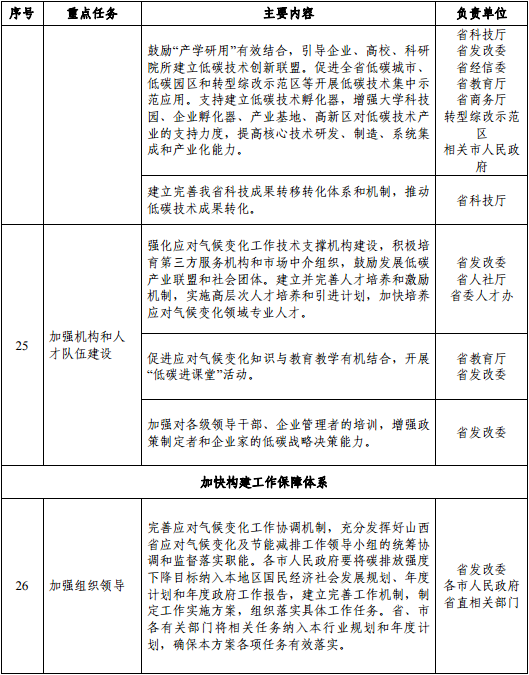 近日山西省政府印發(fā)了《山西省十三五控制溫室氣體排放實施方案》。方案明確了山西省十三五控制溫室氣體排放工作的總體要求和主要目標,對11個地市單位地區(qū)生產(chǎn)總值二氧化碳排放下降指標進行了分解,提出三十條具