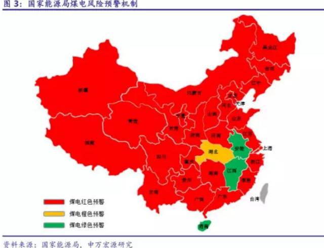 全國28個省市區(qū)劃為煤電紅色預警區(qū)域,嚴控新建機組。2016年4月國家能源局出臺未來3年煤電規(guī)劃建設風險預警機制,全國33個省級電網(wǎng)區(qū)域(含蒙東、蒙西和冀北、冀南)中,除湖北、江西、安徽及海南為橙色或綠色預警區(qū)域外,其他28個省市區(qū)嚴控自用煤電項目建設或投產(不含民生熱電)。其中,納入規(guī)劃但尚未核準的,暫緩核準;2016年開工的停止建設;2015年底以前開工的需調節(jié)投產節(jié)奏。