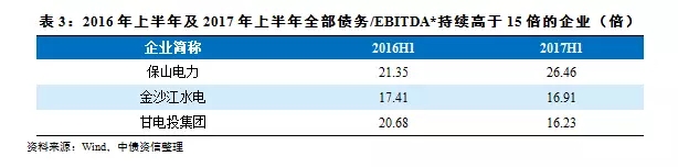 長期償債指標(biāo)方面,2017年6月末樣本企業(yè)全部債務(wù)/EBITDA*[注]為7.92倍(中位數(shù)為7.80倍),較去年同期(分別為6.53倍與6.72倍)有所弱化,主要系盈利能力大幅弱化,EBITDA*明顯弱化所致。但相比于其他行業(yè),電力企業(yè)長期償債表現(xiàn)仍較好。根據(jù)樣本數(shù)據(jù),2017年6月末全部債務(wù)/EBITDA*超過15倍的企業(yè)共6家(占樣本企業(yè)總數(shù)的11.11%),同比增長2家。