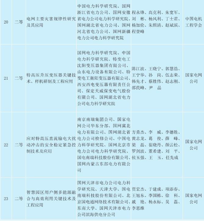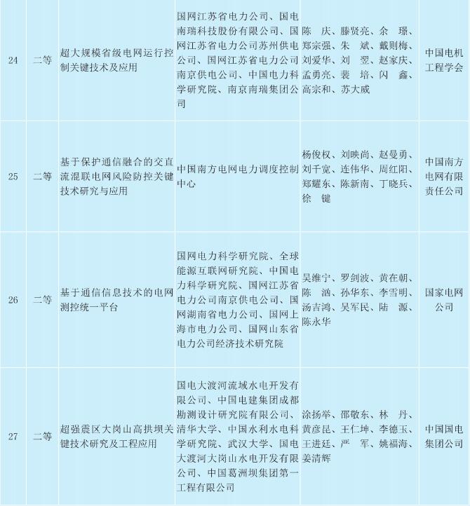 2017年度中國電力科學技術進步獎