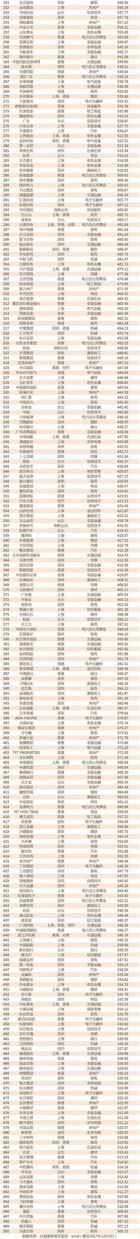 圖說最新中國市值500強(qiáng):哪些公司入榜了?各行業(yè)龍頭曝光(名單)