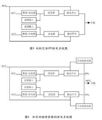 (4)當(dāng)兩臺UPS因故退出運行時,負載才轉(zhuǎn)由靜態(tài)旁路電源供電,逆變器轉(zhuǎn)旁路的時間小于0.5ms,對負載基本無擾動。