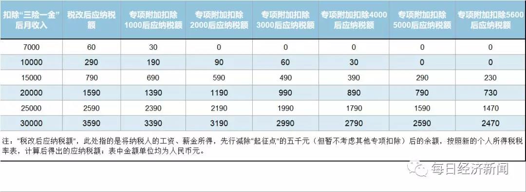 因此,大部分個(gè)稅納稅人都會(huì)有一項(xiàng)、兩項(xiàng),甚至最多五項(xiàng)全部符合專項(xiàng)附加扣除標(biāo)準(zhǔn)。如果你的月收入(扣除“三險(xiǎn)一金”后)在7000-30000元之間,按照不等的抵扣標(biāo)準(zhǔn),可以再有多少減稅空間?