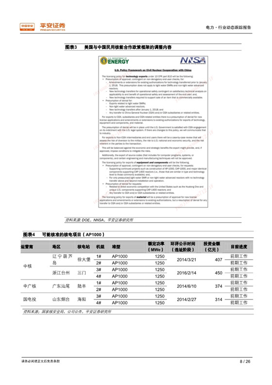 猜想二:AP1000后續(xù)機組審批延遲。美國能源部《關于防止中國非法轉移美國民用核技術用于軍事或其他未經授權目的的措施》,為AP1000后續(xù)項目的推進蒙上了一層陰影。在中美雙方的競爭局勢未出現(xiàn)明顯轉變的現(xiàn)狀下,AP1000后續(xù)機組的審批進度可能會被延緩。