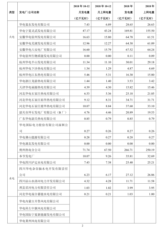華電國(guó)際2018年累計(jì)發(fā)電量2,098.54億千瓦時(shí)