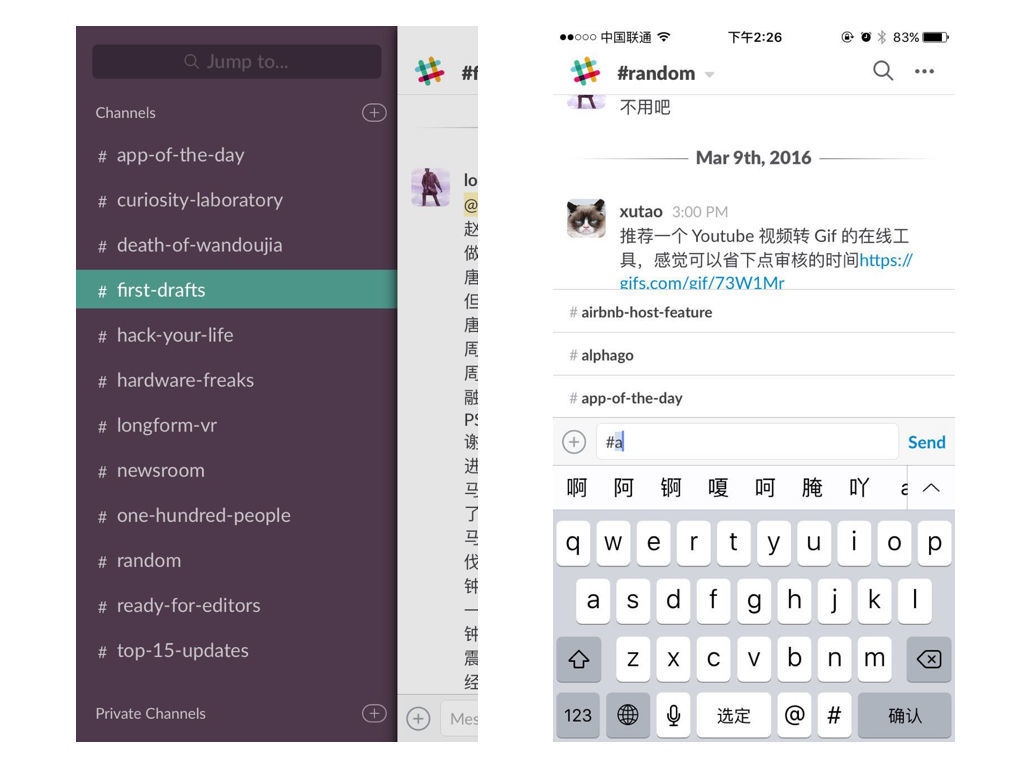 但微信并不是理想的協(xié)作工具,它把人們的公私事情都混雜,還帶有閱讀器、購物和錢包功能,這讓你所有時(shí)間都可能被工作纏?。ㄏ胂肽切┲苣┛吹轿⑿盘嵝延悬c(diǎn)擔(dān)心是工作任務(wù)的時(shí)候)。更不用說,我們工作的時(shí)候也會(huì)被各種無關(guān)的事情打斷了。