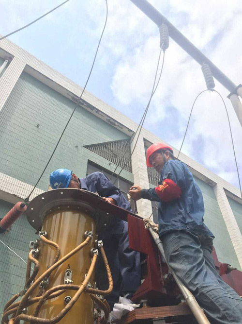 三亞供電局員工檢修保電重要變電站。代進 攝