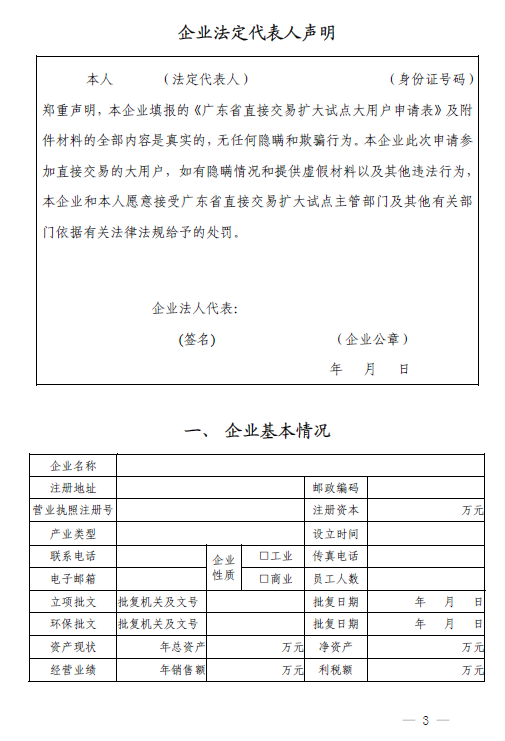 根據(jù)《廣東省經(jīng)濟(jì)和信息化委 廣東省發(fā)展改革委 國(guó)家能源局南方監(jiān)管局關(guān)于2017年電力用戶參與市場(chǎng)交易相關(guān)事項(xiàng)的通知》(粵經(jīng)信電力函〔2016〕292號(hào))要求,2017年工商業(yè)電力大用戶參與電力市場(chǎng)直接交易的條件分別是年用電量8000萬(wàn)、5000萬(wàn)千瓦時(shí)及以上。符合條件的電力大用戶可按照附件1要求提交申報(bào)材料一式六份至我委電力資源處,我委初審后報(bào)省經(jīng)信委核準(zhǔn)。