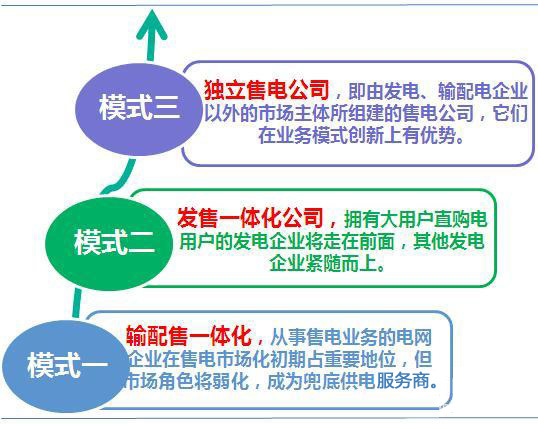 中 國的電力產(chǎn)業(yè)市場跟國外有所不同,國外的售電業(yè)務(wù)百分之五十以上由發(fā)輸配售一體化公司所承擔(dān),獨(dú)立售電公司占一部分比重(其中美國的獨(dú)立售電公司發(fā)展較 好,市場份額達(dá)到百分之四十)。而中國的新電改前的售電市場,主要是發(fā)售一體化(主要呈現(xiàn)為大用戶直購電)和輸配售一體化。按照目前的電改原則,是“管住 中間、放開兩頭”,即加大對(duì)輸配企業(yè)(也就是電網(wǎng)企業(yè))的監(jiān)管,在發(fā)電和售電側(cè)引入競爭。很明顯,發(fā)輸配售一體化和輸配售一體化都是不受政策鼓勵(lì)的。那 么,接下來,根據(jù)國外的成功經(jīng)驗(yàn),中國售電側(cè)整體發(fā)展模式應(yīng)該是:發(fā)售一體化、獨(dú)立售電公司及初期電網(wǎng)企業(yè)通過力量博弈而短期內(nèi)將會(huì)存在的輸配售一體化模 式。