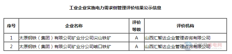 工業(yè)企業(yè)實(shí)施電力需求側(cè)管理評(píng)價(jià)結(jié)果公示