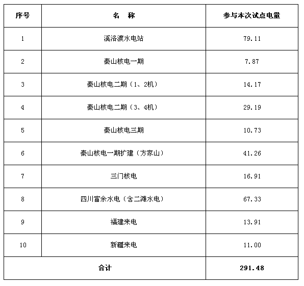 附件:1. 享有優(yōu)先發(fā)電權的發(fā)電企業(yè)參與試點電量