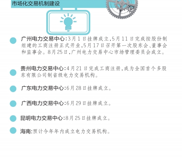 今年以來,公司加快推進(jìn)電力交易機(jī)構(gòu)組建工作。今年3月,廣州電力交易中心成立,標(biāo)志著南方區(qū)域電力市場化改革工作進(jìn)一步深化。對于廣州電力交易中心和南方五省區(qū)省級電力交易中心來說,其最大的特征是都按照多家單位參股的公司制模式組建。目前,南方區(qū)域及省級交易機(jī)構(gòu)運(yùn)行規(guī)范,為電力市場的建設(shè)和發(fā)展創(chuàng)造了良好條件。