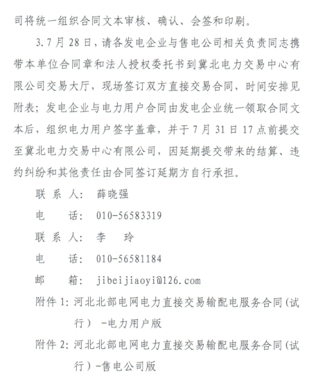 冀北地區(qū)(區(qū)內(nèi))7月電力直接交易輸配電服務(wù)合同開始簽訂