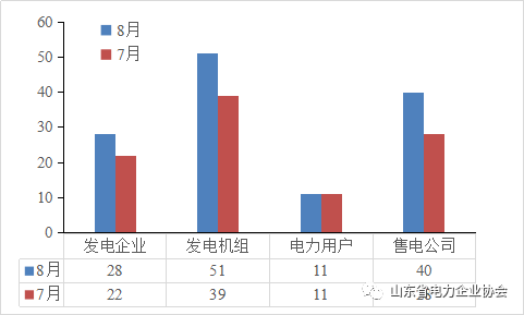 發(fā)電企業(yè)、發(fā)電機(jī)組以及售電公司數(shù)量相較7月都有所增加,其中發(fā)電企業(yè)數(shù)量增加6家、發(fā)電機(jī)組增加12臺(tái)、售電公司增加12家(見(jiàn)圖1)。