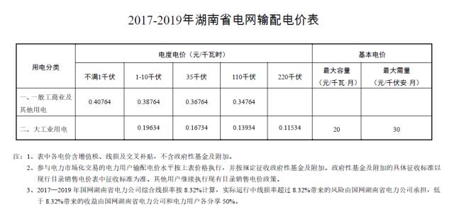 湖南省2017—2019年輸配電價(jià)