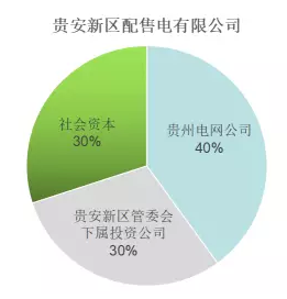 貴安新區(qū)和深圳前海蛇口自貿(mào)區(qū)增量配電改革試點(diǎn)項(xiàng)目采用的是這種模式,其中貴安新區(qū)配售電有限公司中,貴州電網(wǎng)公司占股40%,貴安新區(qū)管委會(huì)下屬投資公司占股30%,社會(huì)資本占股30%;
