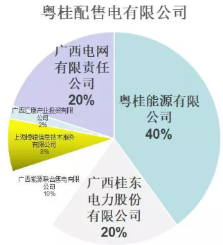 粵桂合作特別試驗(yàn)區(qū)增量配電改革試點(diǎn)項(xiàng)目采用的是這種模式,粵桂配售電有限公司中粵桂能源有限公司占股40%,廣西桂東電力股份有限公司占股20%,廣西電網(wǎng)有限責(zé)任公司占股20%,廣西能源聯(lián)合售電有限公司占股10%,上海博轅信息技術(shù)服務(wù)有限公司占股8%,廣西匯康產(chǎn)業(yè)投資有限公司占股2%。