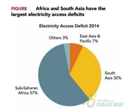 按照地區(qū)分布來看,在10.6億無電人口中,撒哈拉以南的非洲國家占57%(6.09億人)、南亞占32%(3.43億人)、東亞及太平洋占7%,拉美地區(qū)占3%。撒哈拉以南非洲國家的通電率僅為37.6%,南亞國家達到80%。