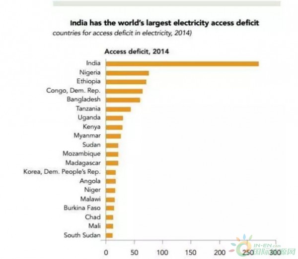如果按國別來看,在10.6億無電人口中,印度一國就有2.70億人;其次是尼日利亞(7500萬人)、埃塞俄比亞(7100萬人)。
