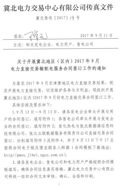 附件:關(guān)于開展冀北地區(qū)(區(qū)內(nèi))2017年9月電力直接交易輸配電服務(wù)合同簽訂工作的通知