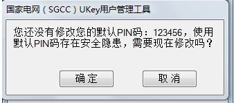 當(dāng)您首次使用UKey時(shí),系統(tǒng)會(huì)自動(dòng)彈出對(duì)話框建議您修改UKey初始口令。UKey的初始口令為“123456”,新口令由字母、數(shù)字或者二者任意組合而成。如下圖。