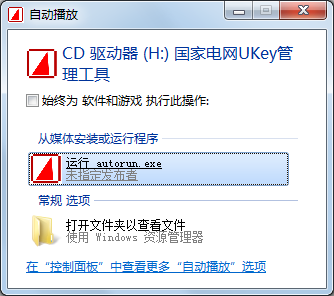 若首次插入U(xiǎn)Key未彈出自動(dòng)安裝界面,也可通過(guò)我的電腦“國(guó)家電網(wǎng)UKey管理工具”文件夾的Setup.exe文件進(jìn)行安裝。