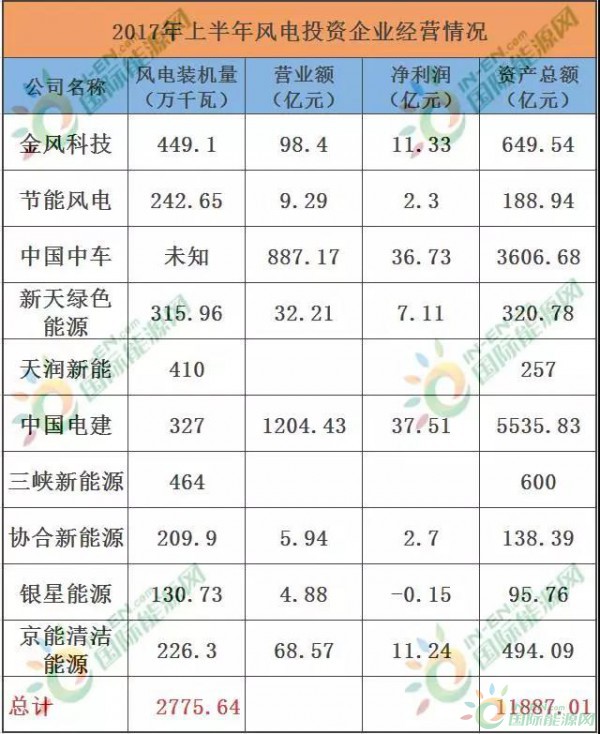 2017年上半年,除五大四小外,十家最大的風(fēng)電投資運(yùn)營商的裝機(jī)總量達(dá)到了0.278億千瓦,占全國風(fēng)電總裝機(jī)的18.53%。下面是這十家企業(yè)的裝機(jī)量與運(yùn)營情況: