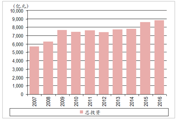 2007-2016年我國電力工程總投資額