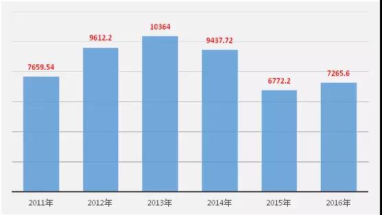 圖3. 2011年-2016年我國(guó)天然氣新增探明地質(zhì)儲(chǔ)量