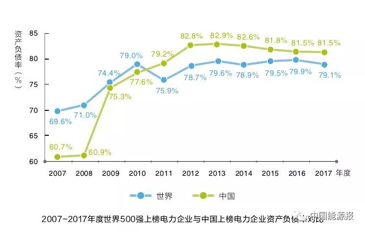 問題一:償債能力較弱。中國上榜電力企業(yè)的整體償債能力弱于世界水平。2009年金融危機(jī)后,中國上榜電力企業(yè)負(fù)債率大幅攀升。