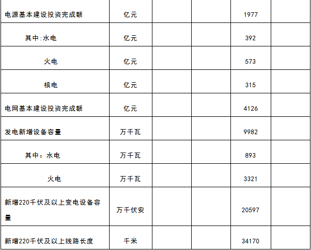 全國電力工業(yè)統(tǒng)計數(shù)據(jù)一覽表