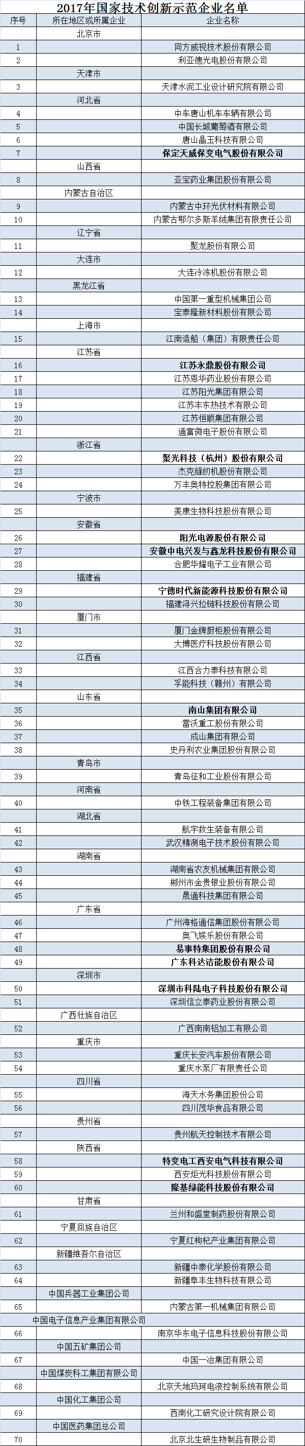 一、認(rèn)定同方威視技術(shù)股份有限公司等70家企業(yè)為國家技術(shù)創(chuàng)新示范企業(yè)(具體名單見附件)。
