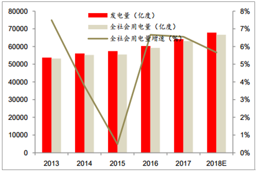 2013-2018E全社會用電量與發(fā)電量