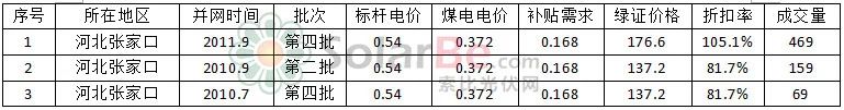 風電綠證由于價格相對較低,成交量比較高,無法一一分析,我們選擇了3個采用電價核準制以后并網(wǎng)的項目。