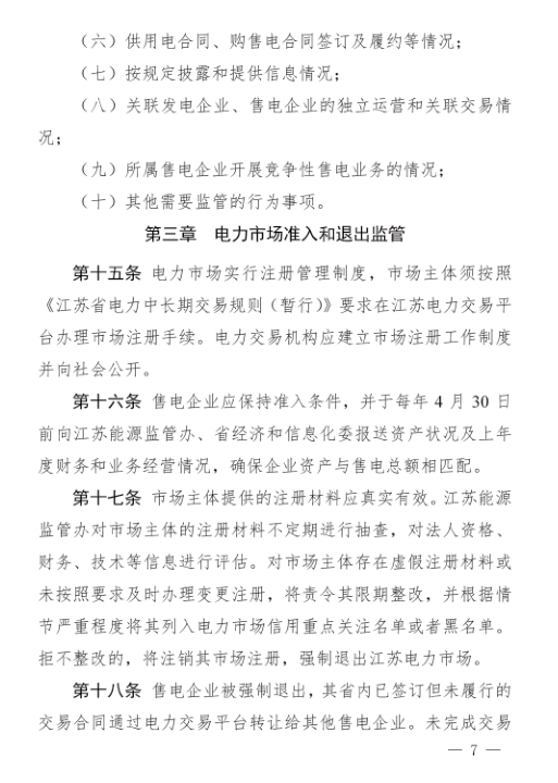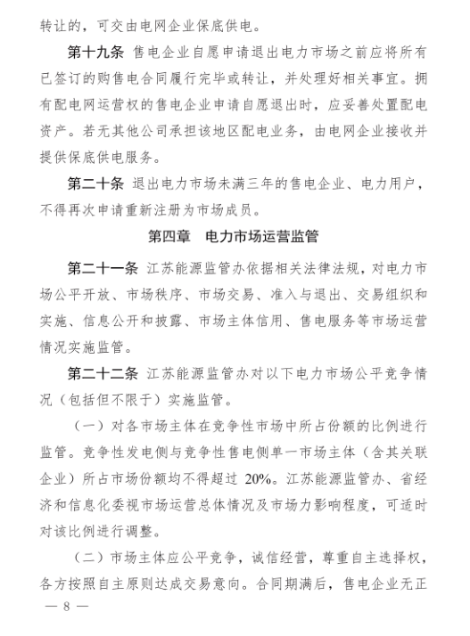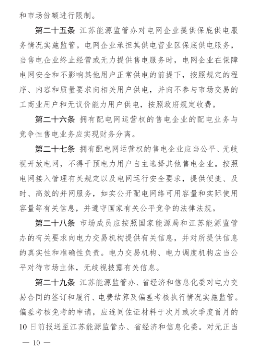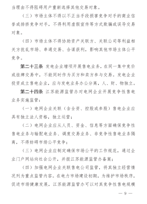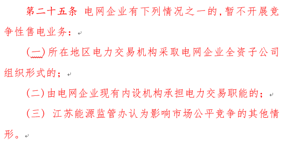 江蘇電力市場監(jiān)管辦法:電網(wǎng)企業(yè)開展競爭性售電將限制規(guī)模和份額
