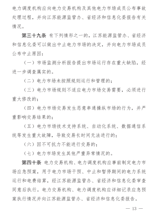 7月30日,江蘇能監(jiān)辦官網(wǎng)發(fā)布了《江蘇電力市場監(jiān)管實施辦法(試行)》的公告,晶見在拿到了實施辦法的文件后第一時間進行通讀,并與5月3日的