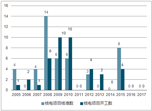 中國核電核準(zhǔn)項(xiàng)目數(shù)與開工數(shù)