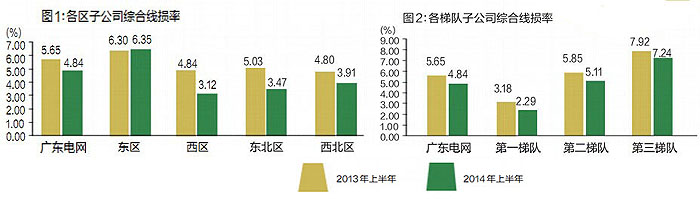 說(shuō)明:廣東電網(wǎng)公司在報(bào)告中除反映縣級(jí)供電企業(yè)整體情況之外,還以區(qū)、梯隊(duì)、所屬地市供電局、分子公司為對(duì)象分別進(jìn)行分析評(píng)價(jià)。以綜合線損率為例,2014年上半年,廣東電網(wǎng)公司4個(gè)發(fā)展協(xié)同區(qū)除了東區(qū)平均綜合線損率略有上升外,其他較上年同期均有所下降;3個(gè)梯隊(duì)平均綜合線損率均有所下降。