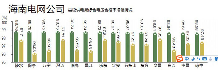 說(shuō)明:2014年上半年海南電網(wǎng)公司14家縣級(jí)供電局綜合電壓合格率增幅為1.33%,增幅全部正增長(zhǎng)。其中,增幅最高的為白沙供電局(2.79%),增幅最小的為文昌供電局(0.81%)。