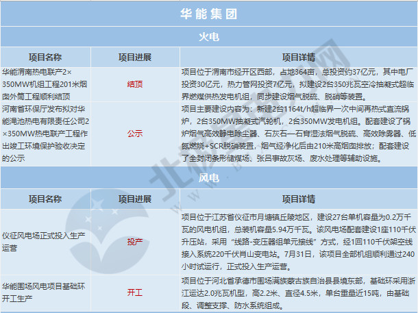 華能集團(tuán)涉及項(xiàng)目動(dòng)態(tài)4個(gè),其中火電項(xiàng)目2個(gè),風(fēng)電項(xiàng)目2個(gè);