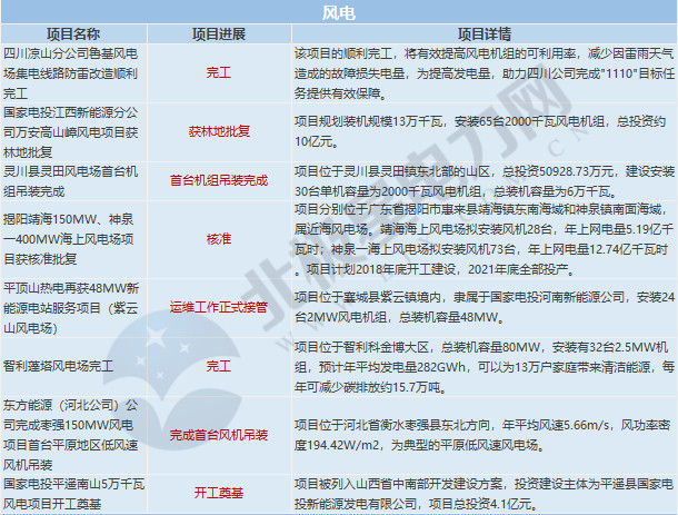 國(guó)家電投涉及項(xiàng)目動(dòng)態(tài)12個(gè),其中火電項(xiàng)目4個(gè)、風(fēng)電項(xiàng)目8個(gè);