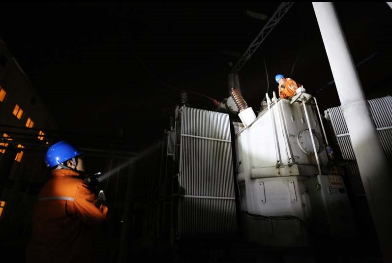 無錫供電公司變電檢修人員在110千伏洪峰變電站搶修1號主變多處滲漏油缺陷,確保即將到來的冬季用電高峰電網(wǎng)安全穩(wěn)定運行。
