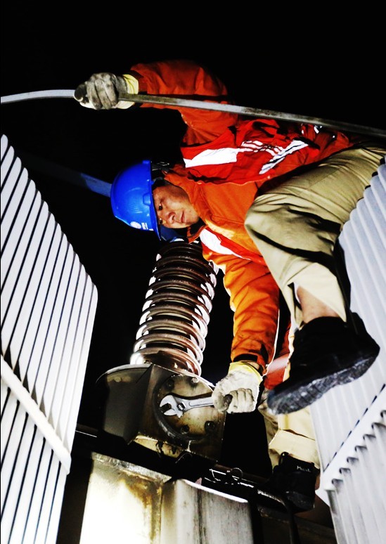 無錫供電公司變電檢修人員在110千伏洪峰變電站搶修1號主變多處滲漏油缺陷,確保即將到來的冬季用電高峰電網(wǎng)安全穩(wěn)定運行?! ∽髡撸憾『?/div>