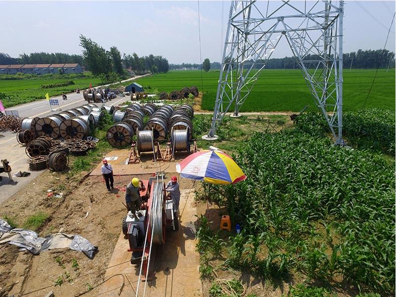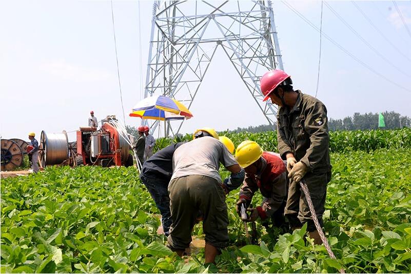 【背景】 電力施工人員在江蘇睢寧縣桃嵐化工園境內展放220千伏導線?! ≡摴こ虨閼c安一一子仙220千伏線路工程,工程新建線路自220