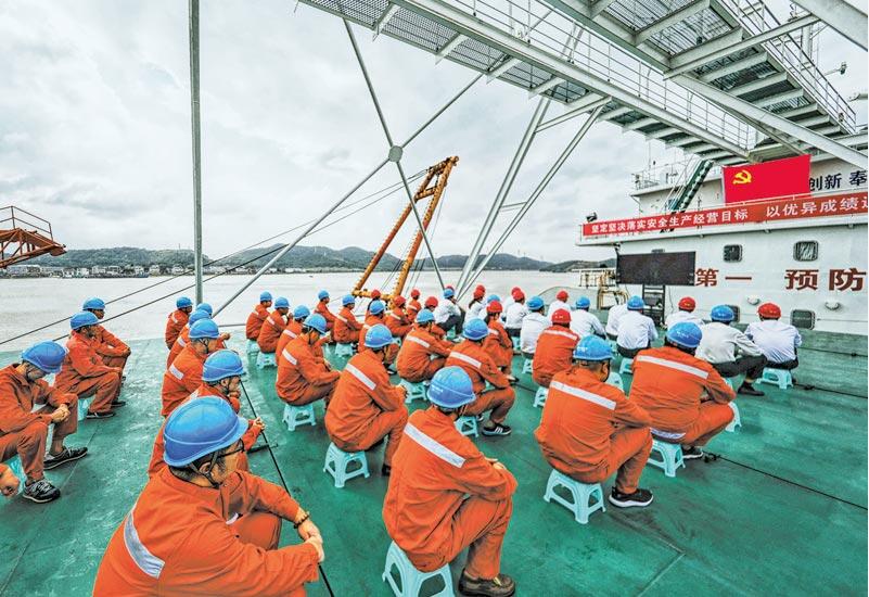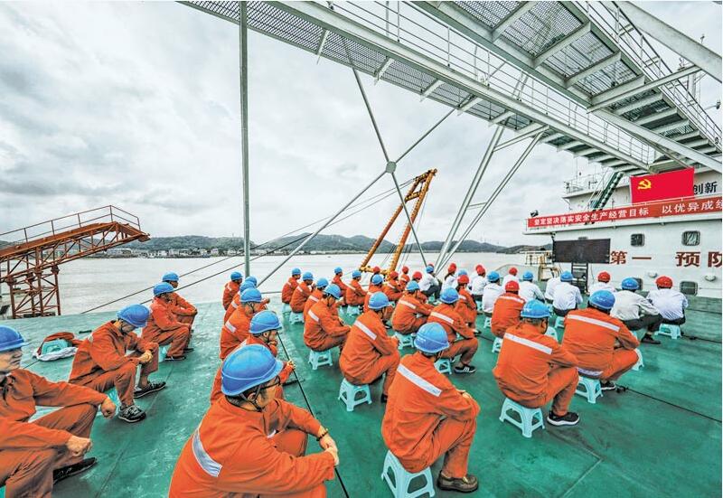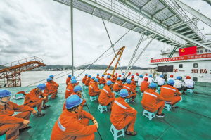 舟山供電公司員工在海纜施工船上集體收看黨的十九大開幕會。張帆 攝四川電力送變電建設有限公司共產(chǎn)黨員服務隊保電人員在甘孜藏區(qū)220千伏新孜Ⅰ、Ⅱ線400號桿塔現(xiàn)場蹲守保電,并用手機觀看黨的十九大開幕會直播