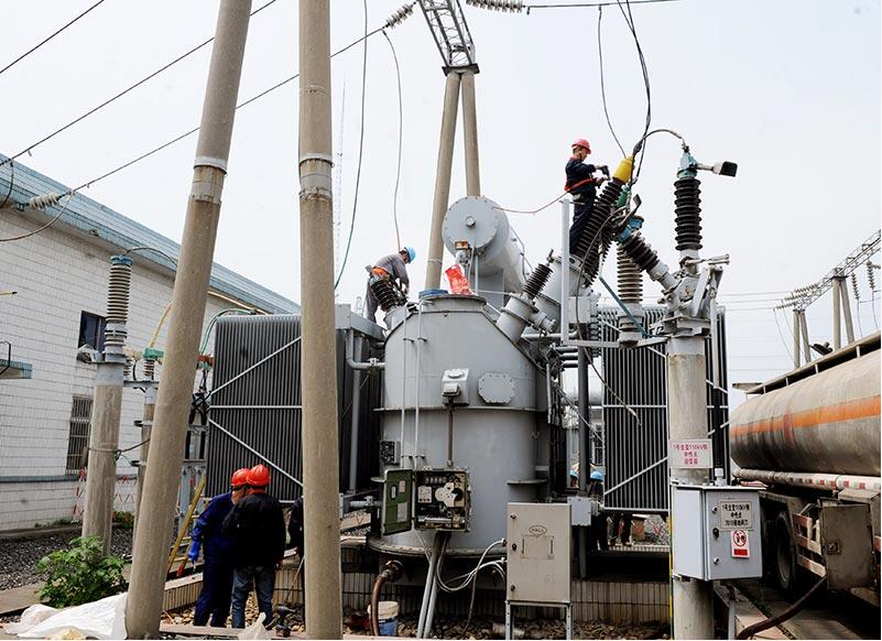 靖江市供電公司組織人員對110千伏變電站進(jìn)行改造,更換大容量變壓器,以滿足斜橋鎮(zhèn)客戶迎峰度夏期間的用電需求。