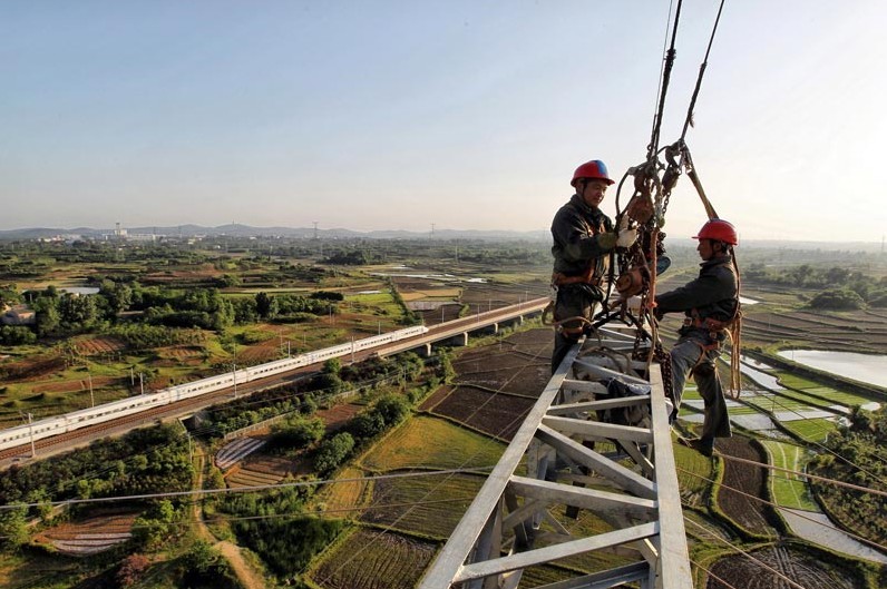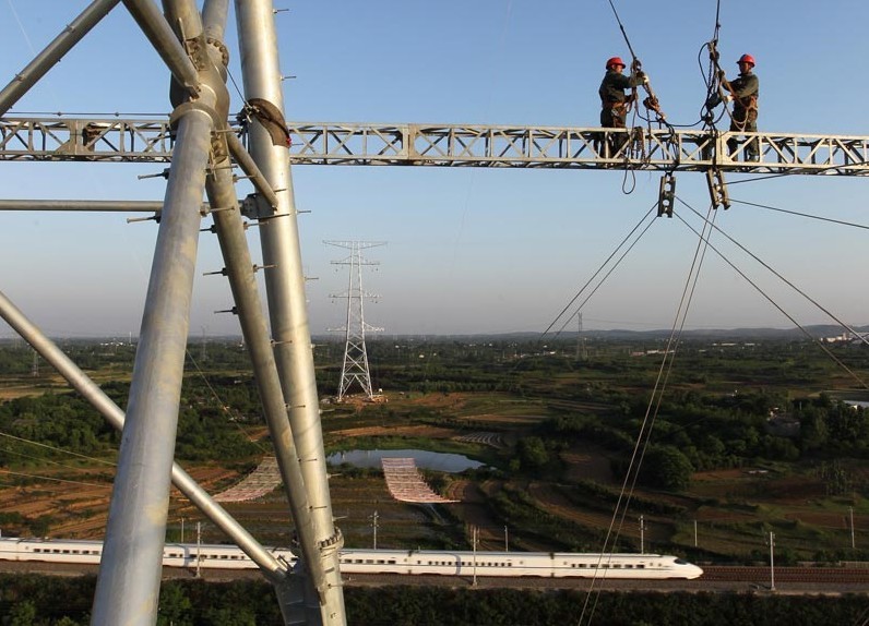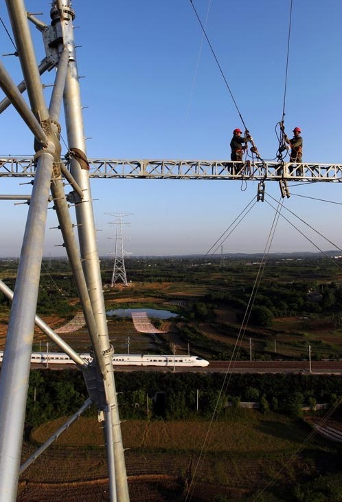 在安徽合肥地區(qū),經(jīng)過(guò)湖北省送變電工程公司員工2天夜以繼日的緊張奮戰(zhàn),皖電東送工程4標(biāo)段跨越合肥—武漢客運(yùn)專線鐵路封網(wǎng)工作順利完成,開始牽引第一根導(dǎo)線,標(biāo)志著此標(biāo)段施工難度最大的區(qū)段架線攻堅(jiān)戰(zhàn)正式拉